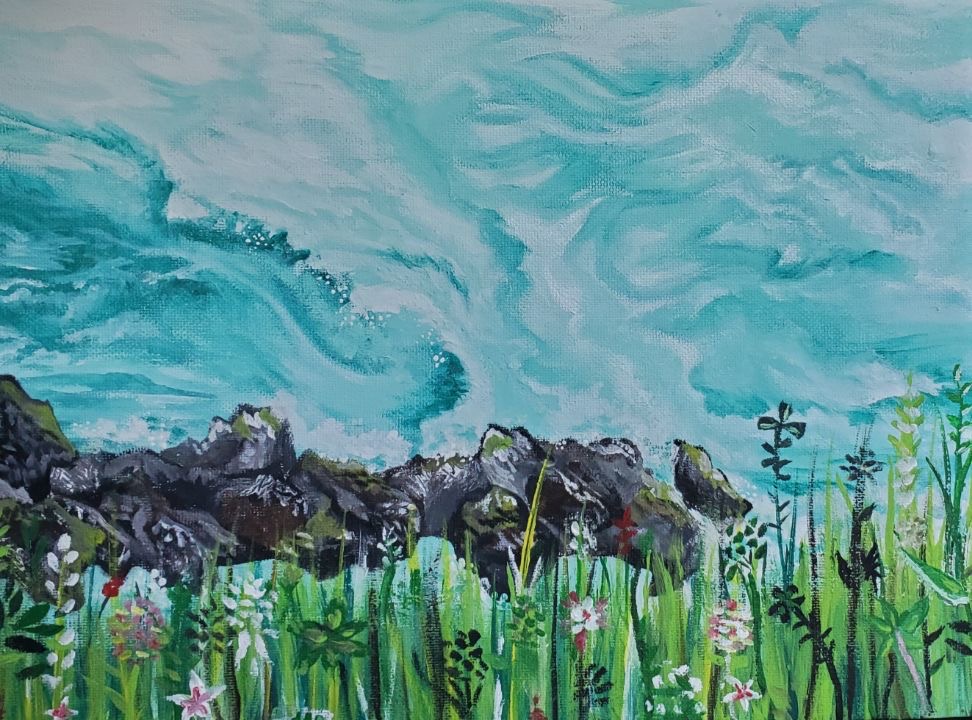 This view was painted with acrylics and reminds us of Mother Nature’s serenity and beauty.